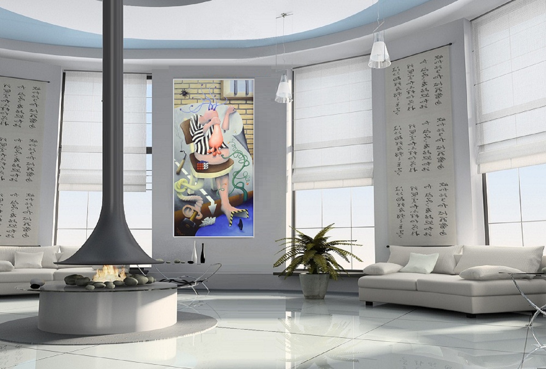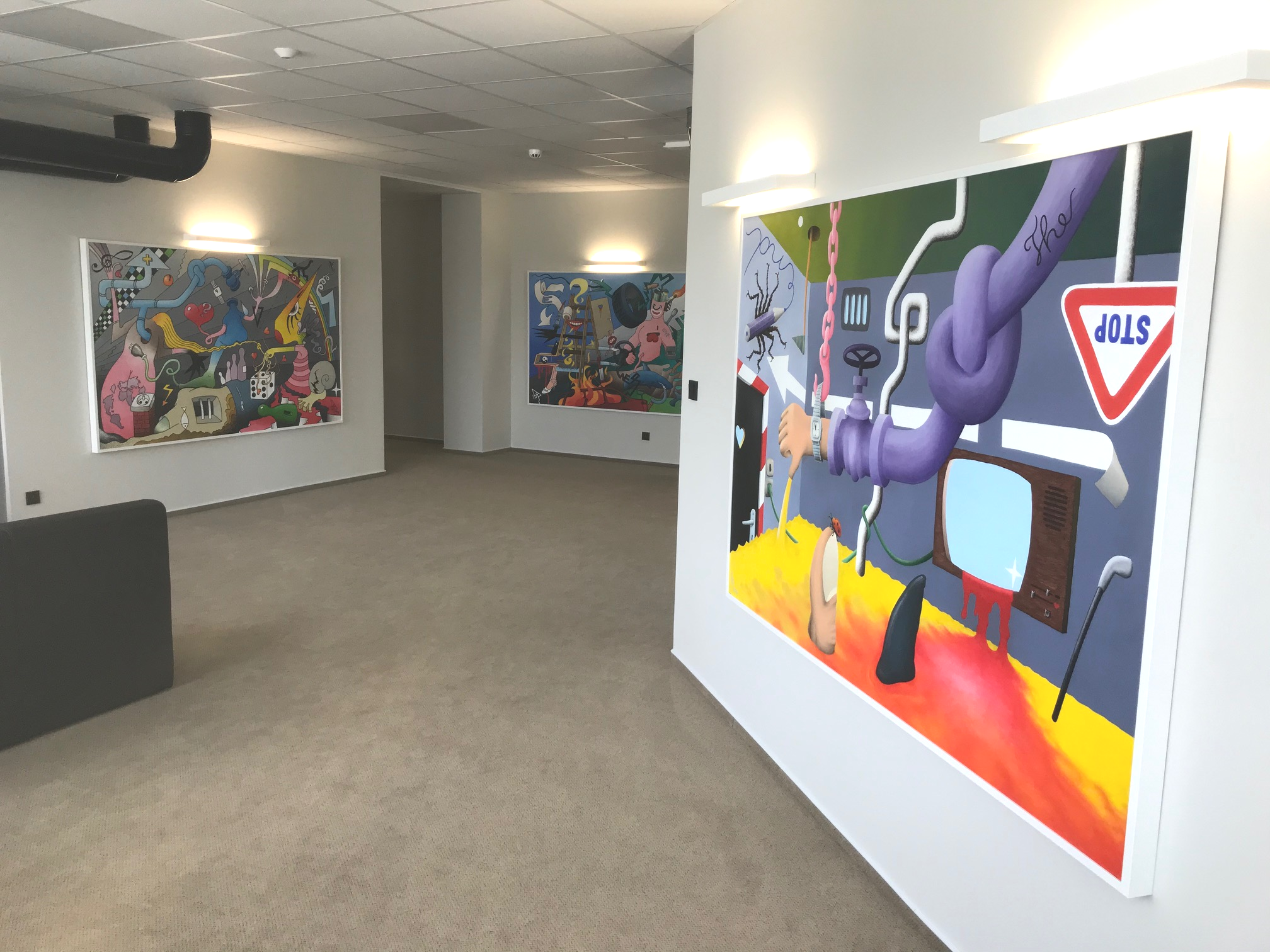 Níže ukázka již prodaných obrazů, jejich původních skic, jejich vystavení na výstavách, u zákazníků a v moderních interiérech pro představu: